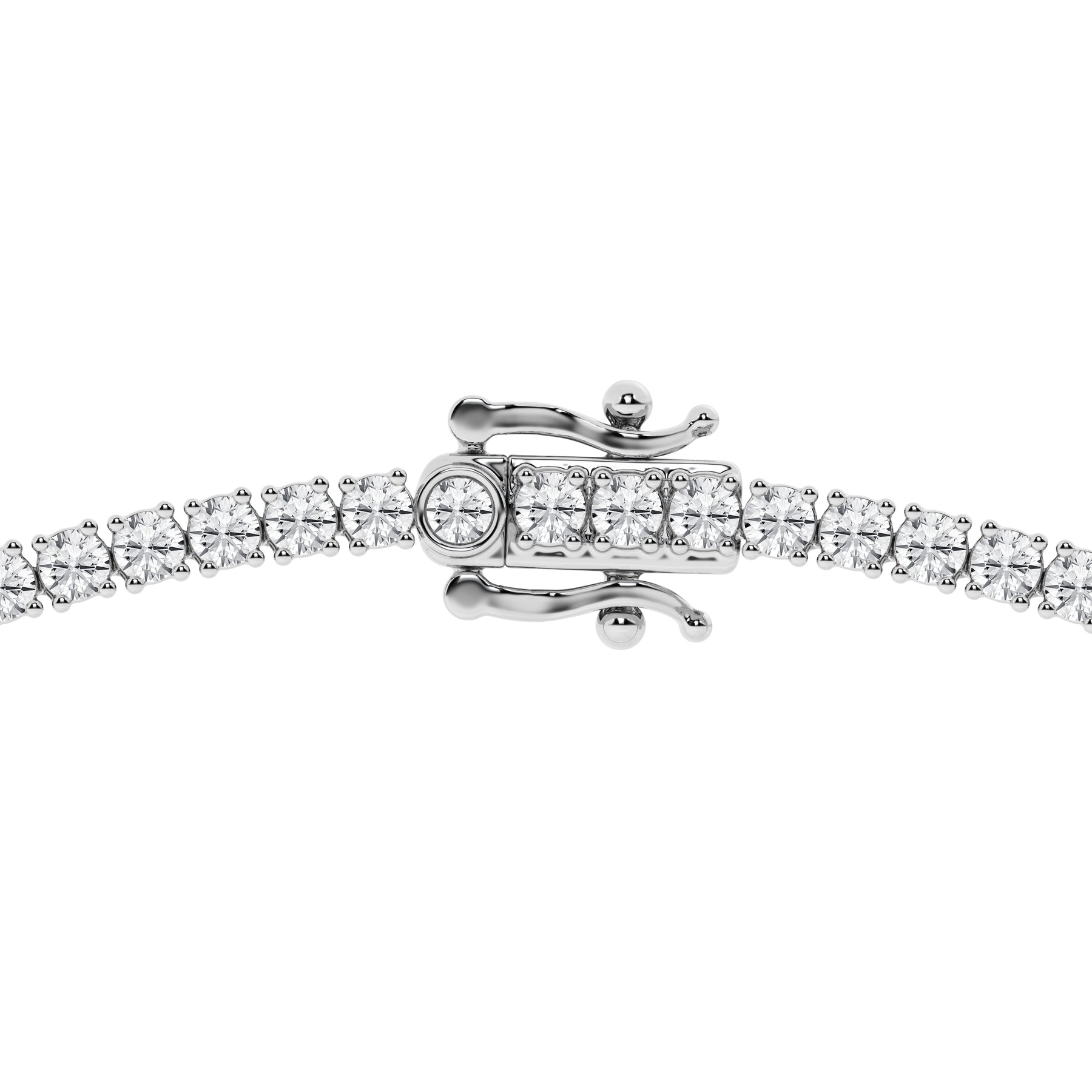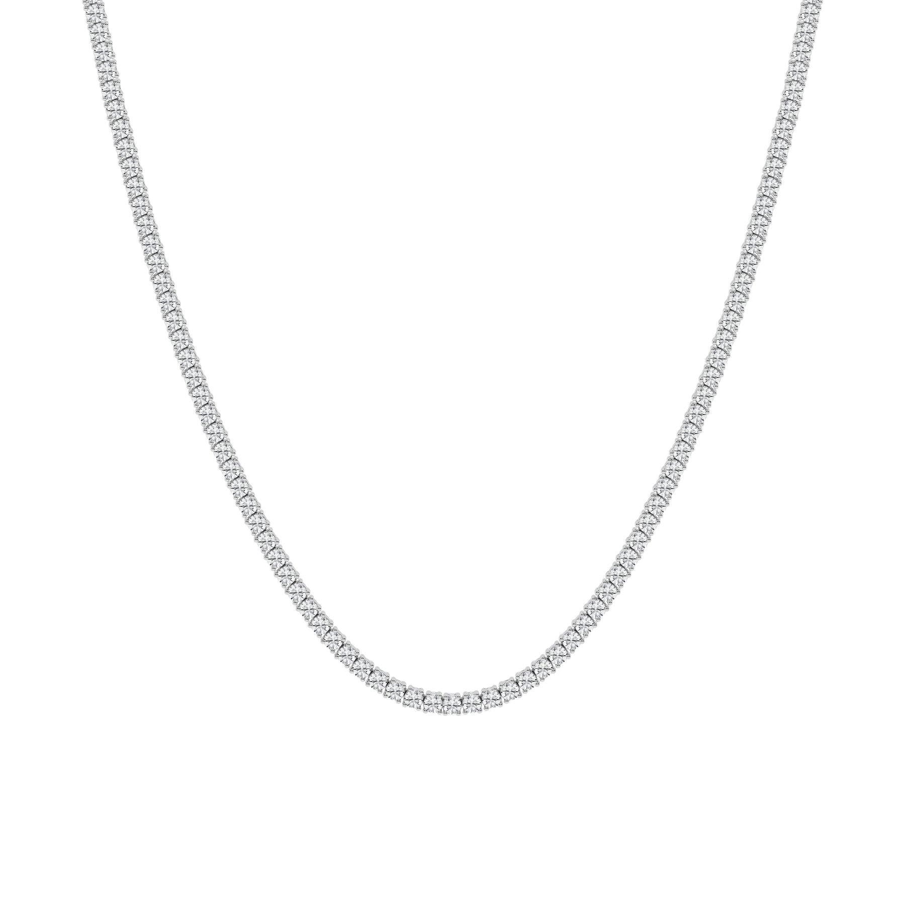 Discover timeless brilliance with our lab-grown diamond tennis necklace. 169 round diamonds totaling 10 carats set in gleaming 14K white gold create an unforgettable statement piece.